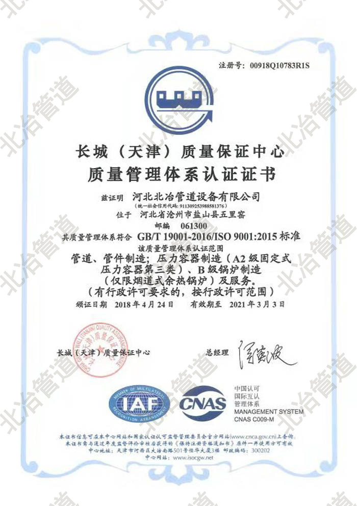 河北北冶管道設(shè)備有限公司,位于河北省鹽山縣城工業(yè)區(qū),屬環(huán)渤海經(jīng)濟(jì)區(qū),距天津海空港160公里,距京滬鐵路、滄州客貨站40公里,距京滬高速路40公里,205國(guó)道、武港路穿越公司兩側(cè),交通便利。